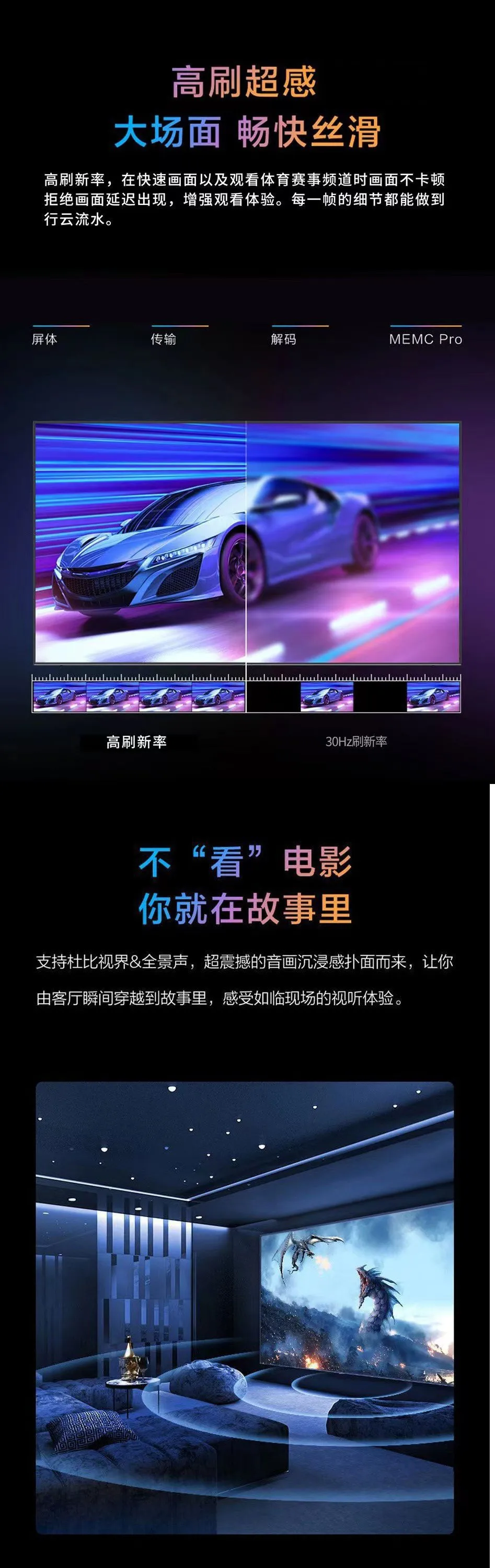 Screen size: 32, 40, 50, 55, 60, 65, 70, 75, 80, 100, 85.