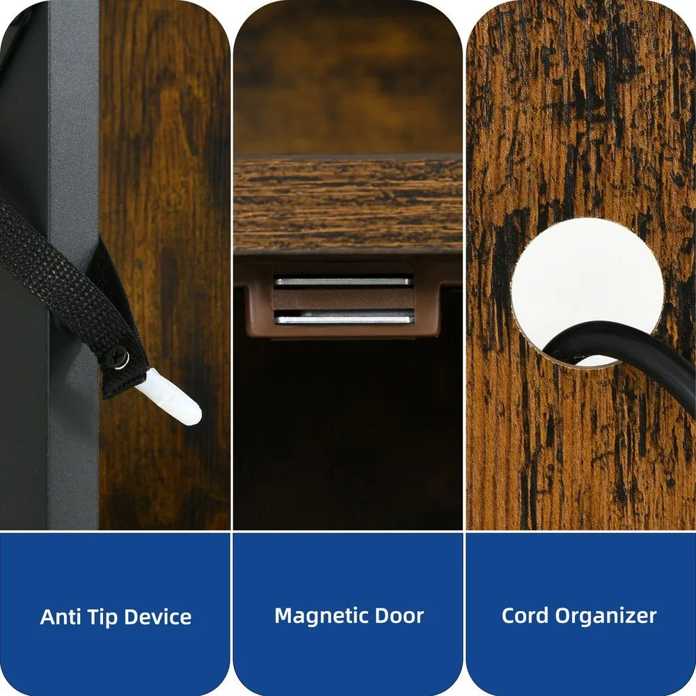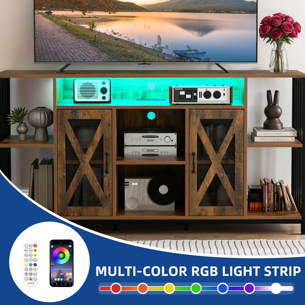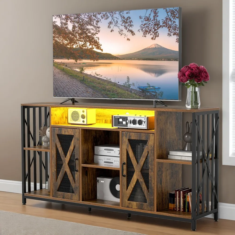 Smart Storage Solutions: Combining open shelves and hidden cabinets, this rustic TV stand offers versatile storage options for your media, electronics, and decorative items. The adjustable shelves allow you to neatly organize your space, maintaining a practical and clutter-free environment.
