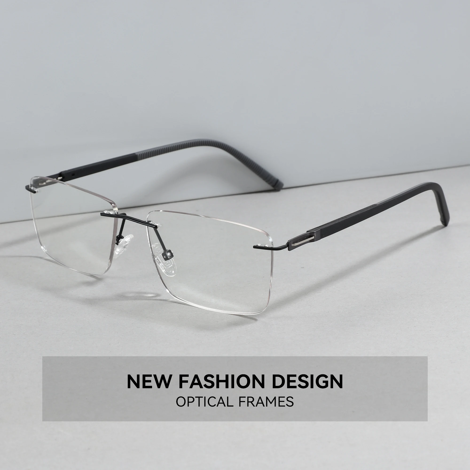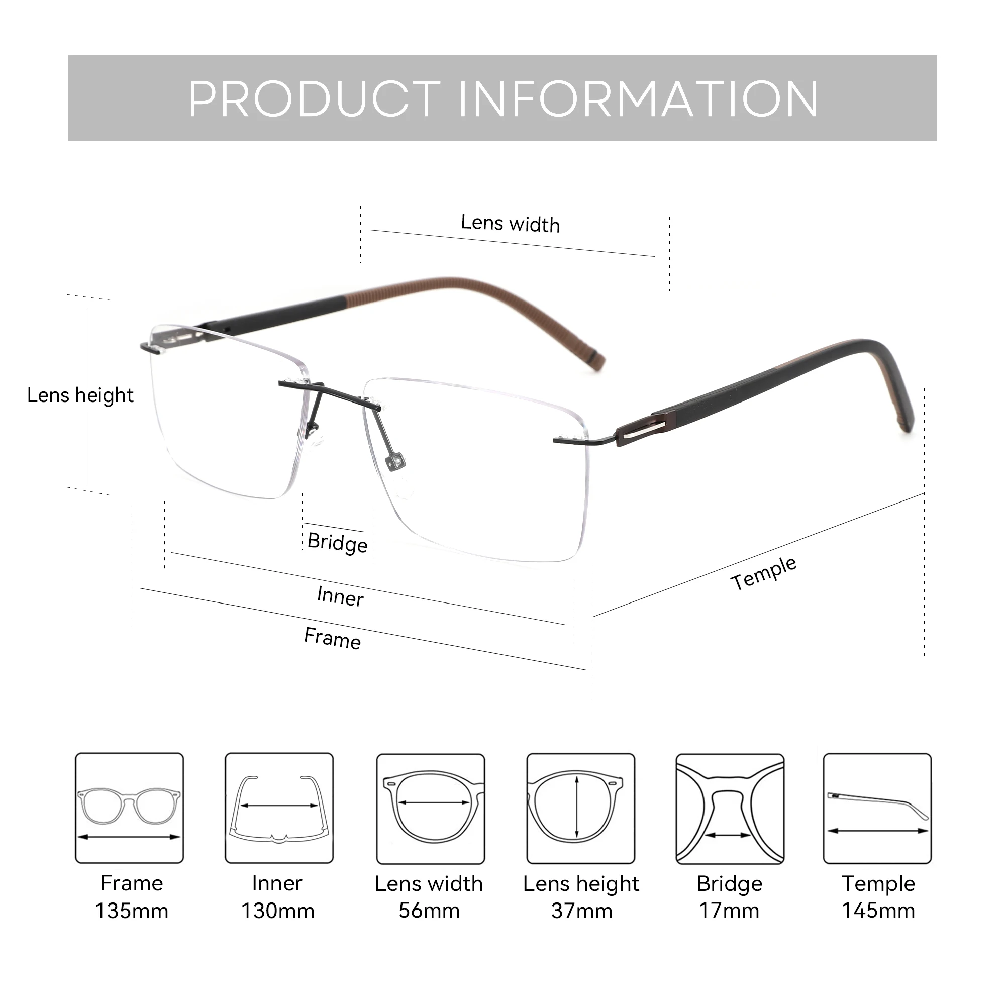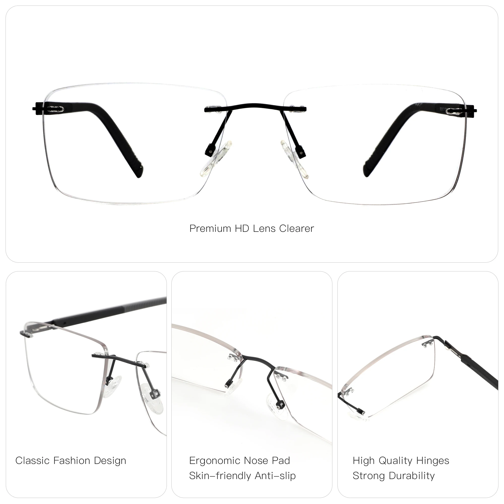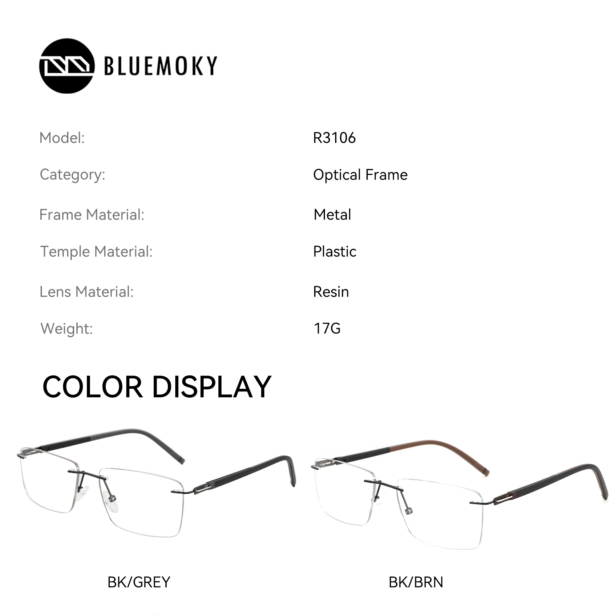 BLUEMOKY Stylish Rimless Rectangle Prescription Glasses High-quality Anti Blue L
