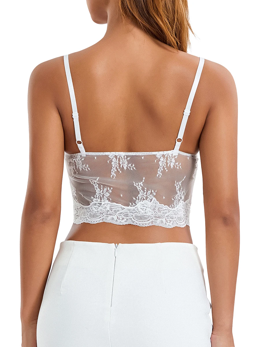 Women Summer Basic Camisole Sheer Lace Patchwork Sleeveless V Neck Crop Tops for Streetwear Clubwear