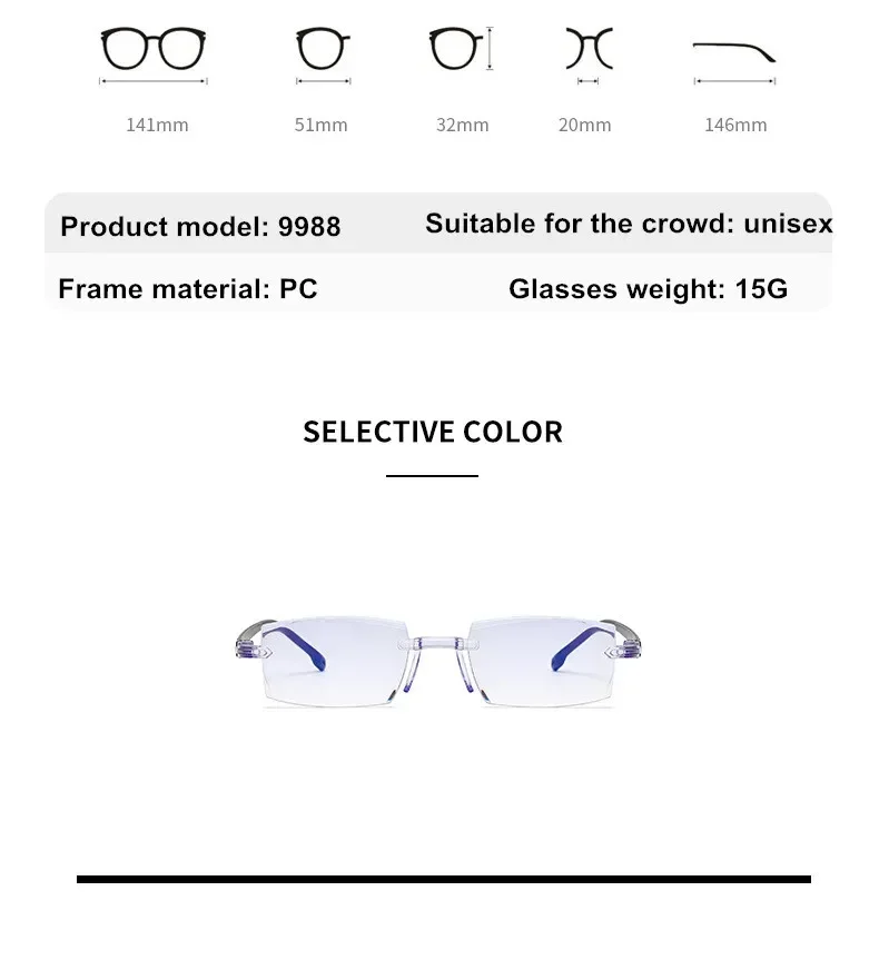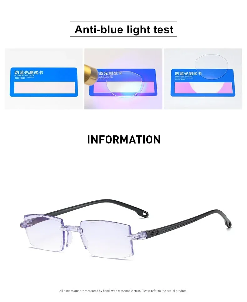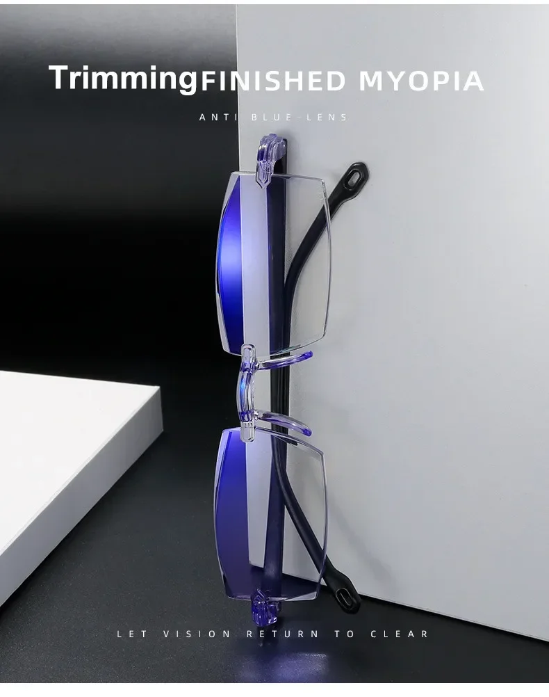 Reading Glasses 0 -1.0 To -4.0 Myopia Glasse Rimless Anti Blue Light Men Myopia