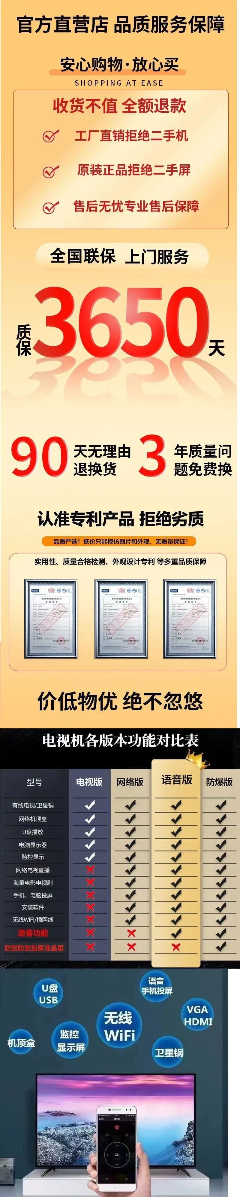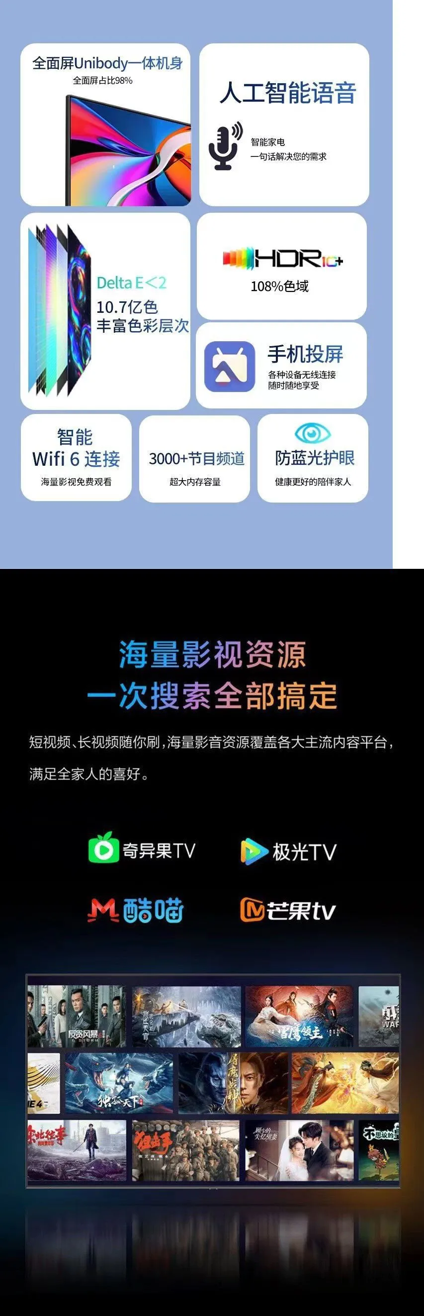 Screen size: 32, 40, 50, 55, 60, 65, 70, 75, 80, 100.