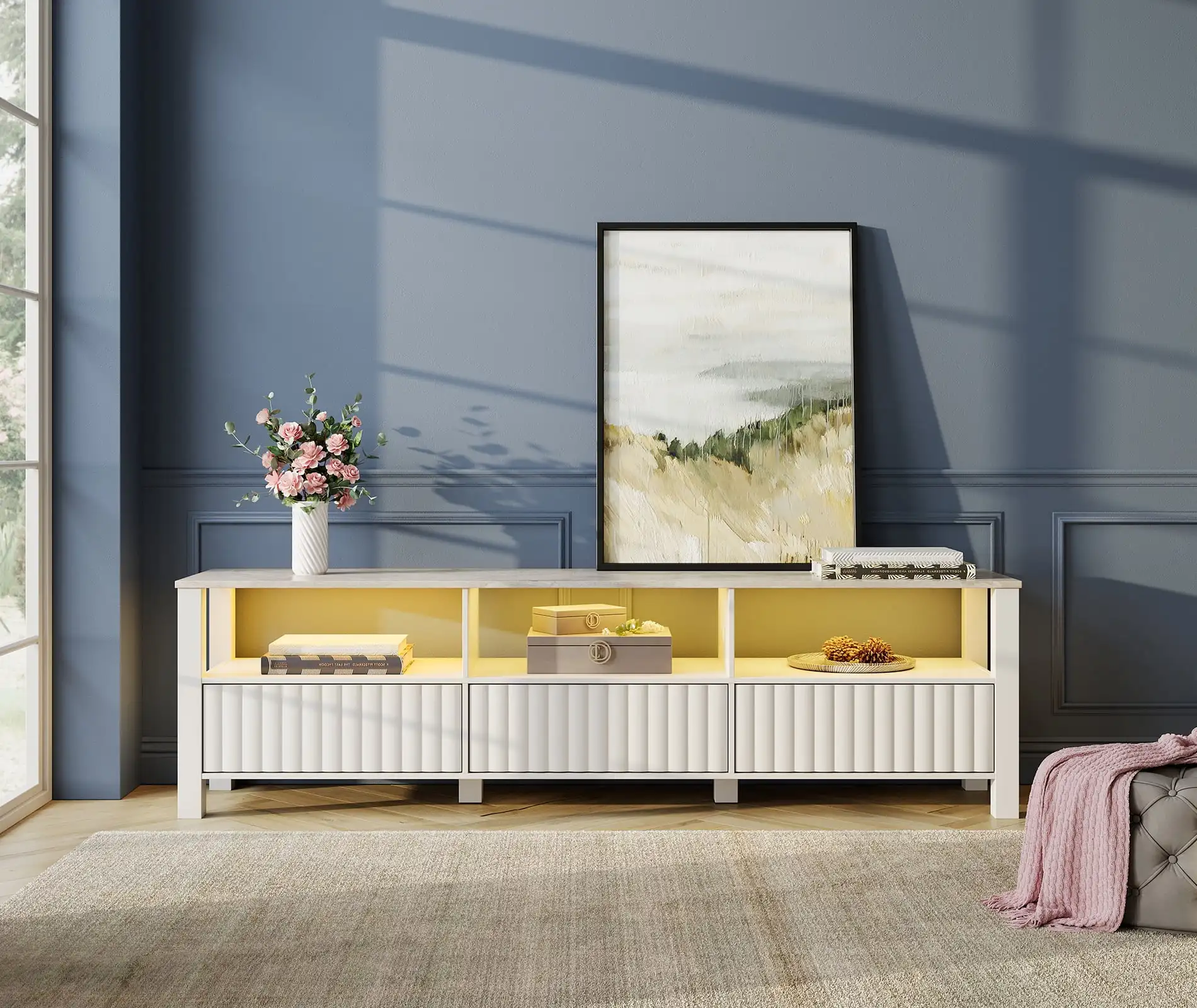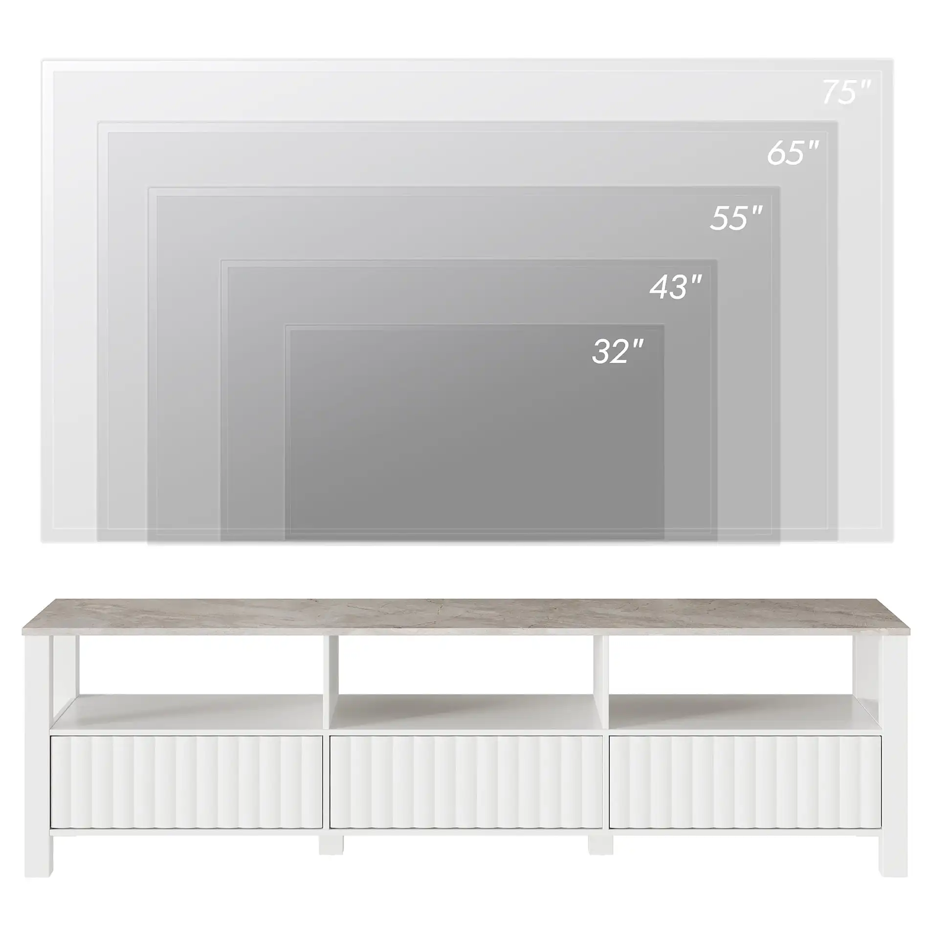 TV Stand for 75 inch TV Entertainment Center White TV Console Table with 6 Stora