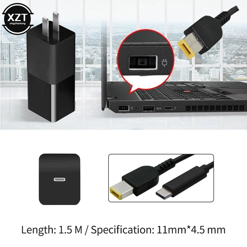Feature:Designed to charge your devices for Lenovo Thinkpad Yoga with USB C PD charger. Support PD fast charging function. (★NOTE: Charging speeds will vary depending on your device and wall charger, we recommend that you use USB-C PD Charger) Charging Power Requirement: 90W or higher. Square Plug to USB C cable, perfect for charging your devices with power bank or USB C wall charger. Say good bye to buy an extra adapter (★Only for Charging, not Syncing data.) Durable laptop connector to USB C Cable with reversible USB-C connector. 1.5meter is long enough to connecting devices while you are still charging in your bedroom, office or wherever you want.Specifications:Type: USB type c to DC plug power adapterVoltage:18.5V~20VPC ingerface diameter:11x4.5mm pc interfaceColor: BlackLength: 1.5meter approx.Applicable models: For Lenovo G400 G500 G505 G405 ThinkPad X1 Carbon Yoga 13,etc.Tips: The wattage for the USB Type C Power Adapter should be the same with or higher than the output end. This is very important. Please feel free to contact customer service if any help in need.
